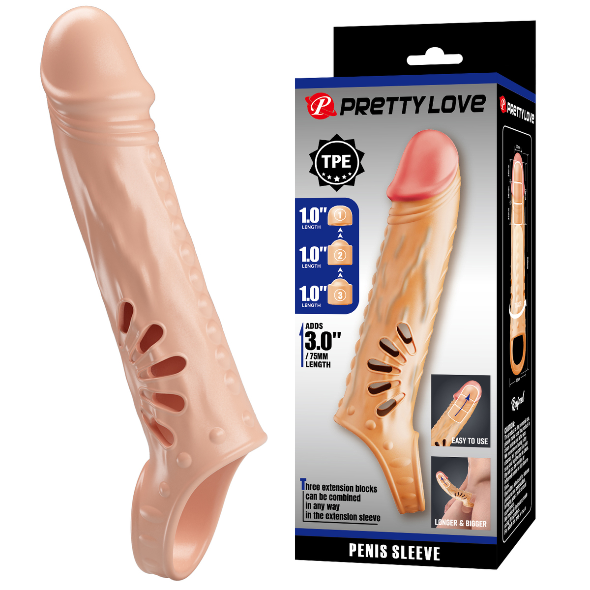 9.5" Flesh Penis Sleeve With 3pcs Extension Blockes