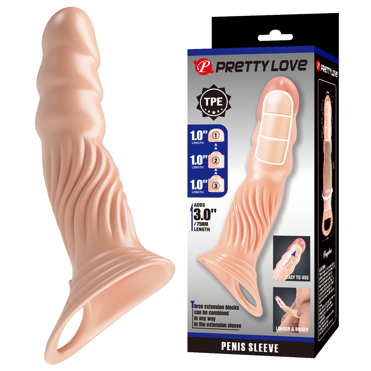 9.5" Flesh Penis Sleeve With 3pcs Extension Blockes