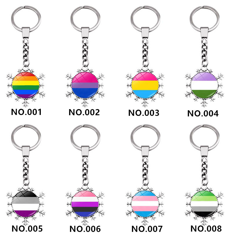 D707 Rainbow Gay Pride Flag Key chain Snow Pendant Key Ring