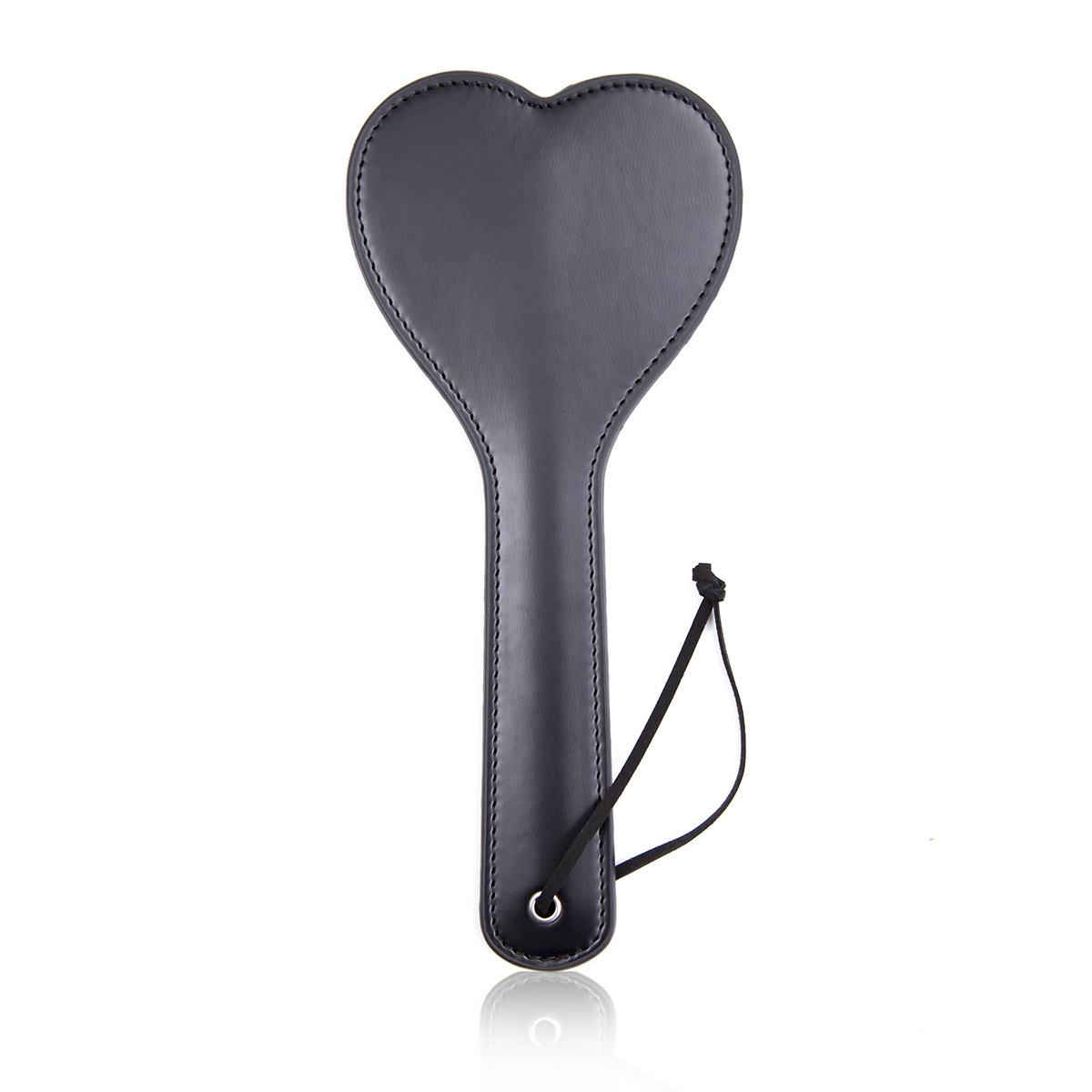 Black Leather with Heart Shape. This shiny patent in leather paddle has a boned handle, it is shaped like a heart, to tease, tempt & torture your loved one.