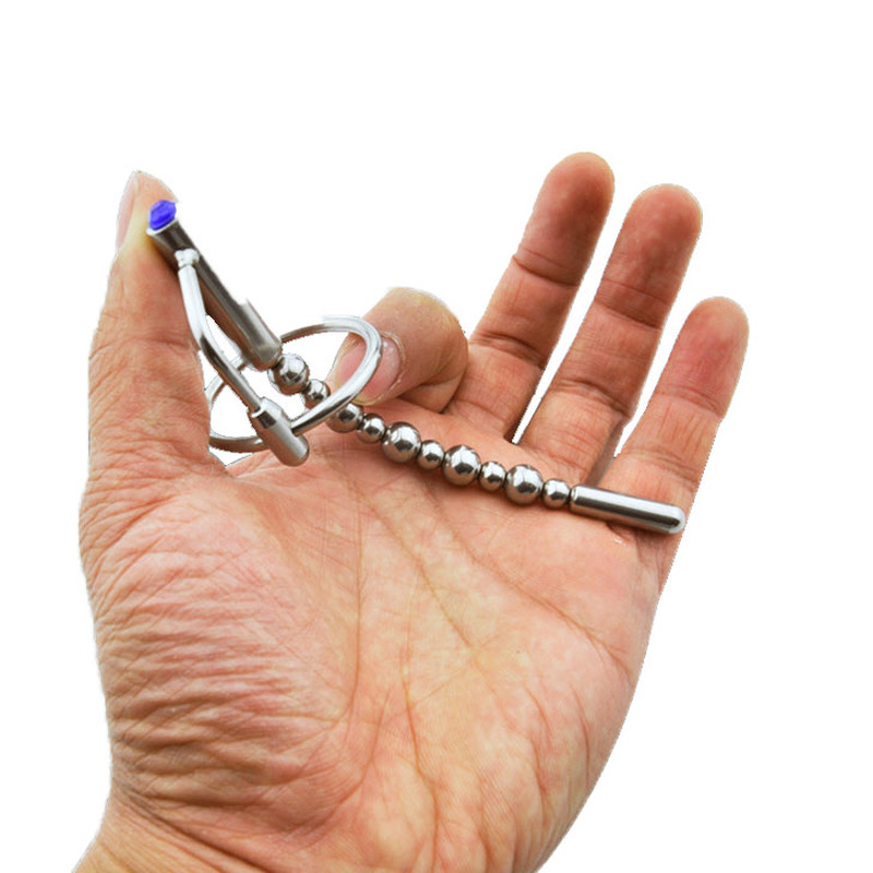 Pleasure and Pain combine exquisitely to make this Jeweled Bendable Beaded Penis Plug with Glans Ring the ultimate new toy for Mistress??s love slave. The effective and sensually tapered penis plug has nubs and ridges all along the length of it to tease and please. A 1.25" ring goes around the penis behind the head, holding the whole device erotically in place.