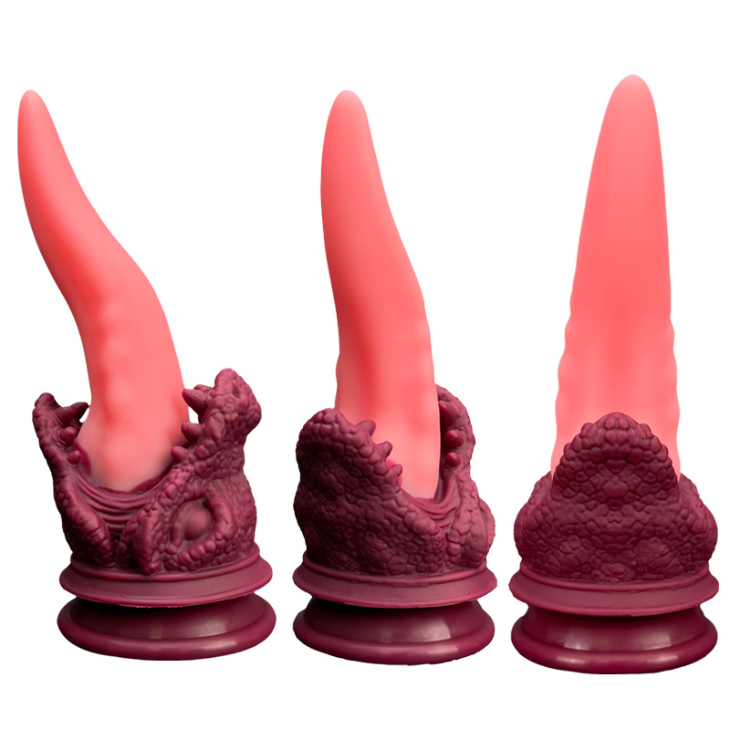 He is different from normal dragon dildo, we use dragon tongue as the design base, the dragon head is a suction cup base, from the side, the Ladon is flat overall. It gradually becomes thicker from the head down, and the bump texture on both sides of the middle and lower increases the design sense of the product. The dangerous looking fangs are actually very soft and comfortable, this dragon dildo is mostly smooth tongue shape with a thin tip for easy insertion, and the length is perfect for picking at the G-spot and male prostate.