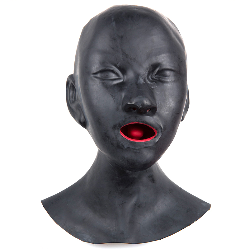 Latex Mask Heavy Rubber Hood Lined with Red Mouth Sheath Tongue and Nose Tube