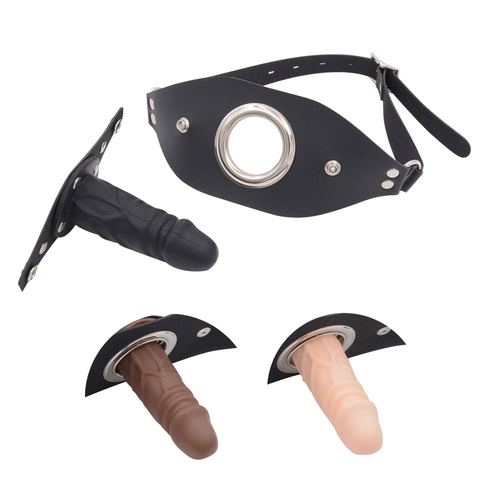 Fill yourself to the brim with this kinky black Leather Head Strap with Penis Gag featuring an invasive little rubber penis gag. Fitted with metal buckles and studs this gag is certain to silence and stifle - resistance is futile!