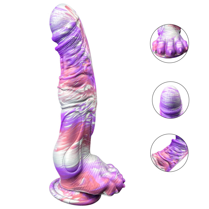 Introducing the Magic Claw Colorful Alien Dildo, a striking and imaginative addition to your collection of intimate products. This 3D rendering showcases a large, vividly designed dildo that features a captivating blend of purple and white hues, embodying a unique alien aesthetic. Crafted from high-quality silicone, this multicolor dildo not only promises a visually stimulating experience but also ensures a safe and comfortable use.