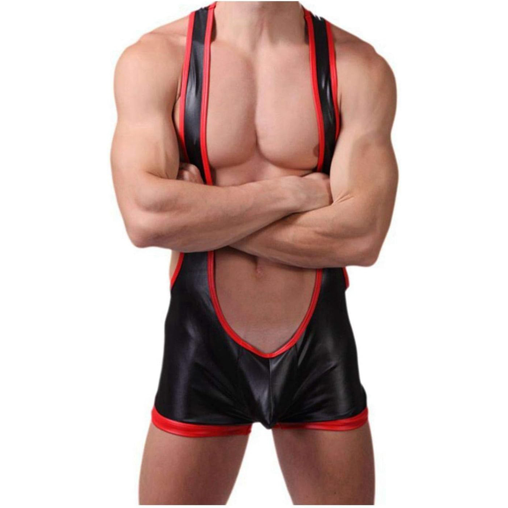 Teddies Men Sexy Lingerie New Faux Leather Bodywear Wrestling Singlets Siamese Boxers Underwear Sexy Men Bodysuits Solid Leotard
