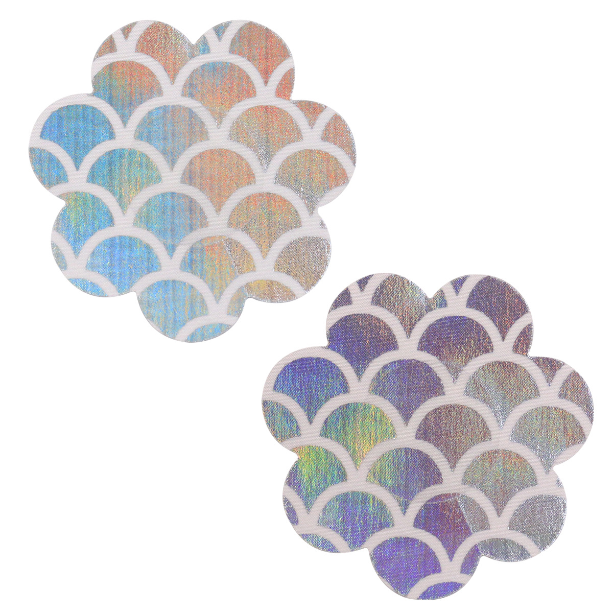 The holographic mermaid scale design adds a touch of whimsy and magic to any outfit, while the easy peel off backing and soft satiny texture make them a breeze to wear. Plus, they are hypoallergenic and latex free, making them suitable for even the most sensitive skin. These pasties are perfect for braless days, under fishnet or sheer tops, raves, festivals, club nights, costumes for Halloween, Valentines Day, beach days, or just a special night in.