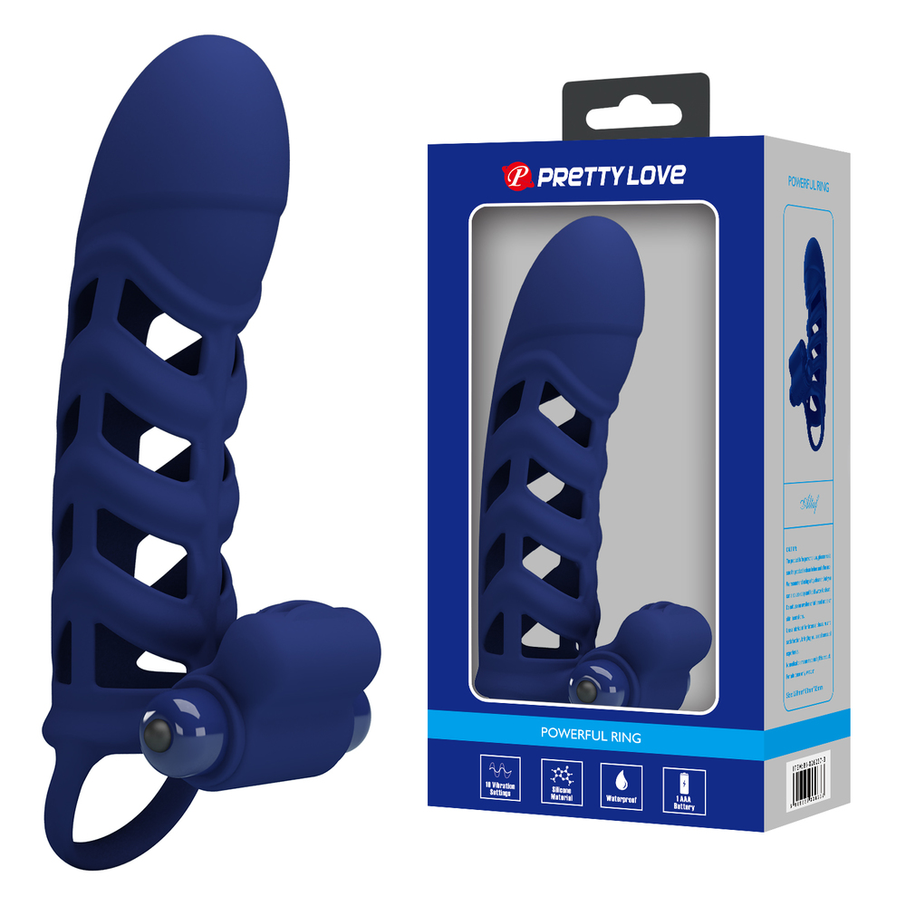 Prettylove Dark Blue Vibrating Fishnet Penis Sleeve