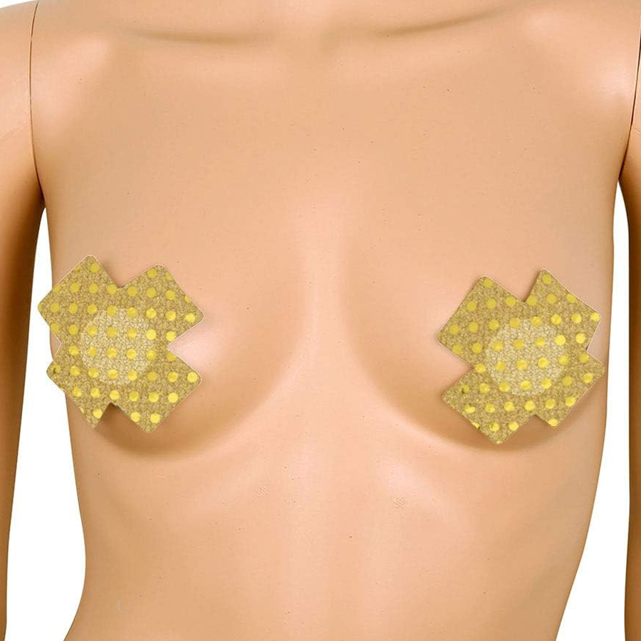 Keep those girlies bedazzled with The Sequin Cross Nipple Pasties! Crafted from a thick faux silver metallic base, these covers feature an X silhouette, pave rhinestone embellishments, and a quick and easy application. Simply peel the protective covers off the backs, and apply to clean, dry skin for your next festival or club rendezvous.