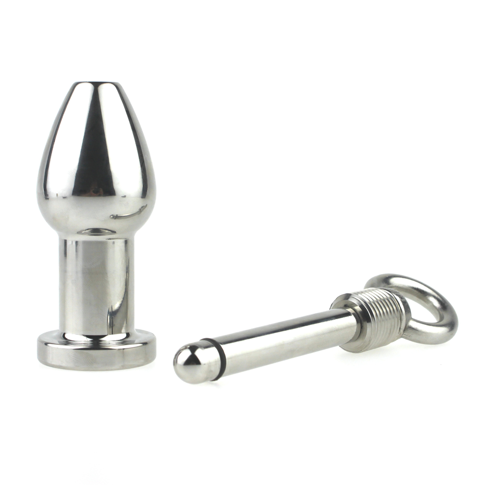 This heavy, slick hollow metal plug features a removable inner portion, turning a classic ass toy into a see-through tunnel. Just twist the loop at the base and remove to reveal the inner secrets of your partner. The smooth stainless steel glides into place easily and can be heated or chilled, allowing you to tease your lover with temperature play. Non-porous and allergy safe, stainless steel is easily disinfected and compatible with every type of lube.