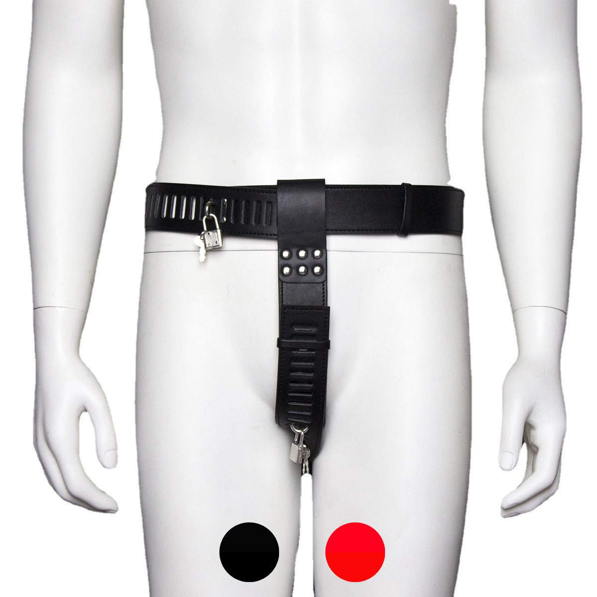 This PU leather chastity belt lets you enjoy pleasure control with a lower price point. Using all man-made materials, this two strap system has many points of adjustability for a secure fit on many different body types. One strap secures around the hips, while the other runs up between the legs. Using the two small padlocks, you can strap your partner in tight, denying them access to satisfaction and unable to escape. Sitting low on the hips and with a sleek profile, this devious device can be worn out under clothes for an added element of excitement. Measurements: Fits waits between 25 and 35 inches in circumference; Bottom strap adjustable from 11 to 21 inches in length. Material: PU Leather, metal. Color: Black