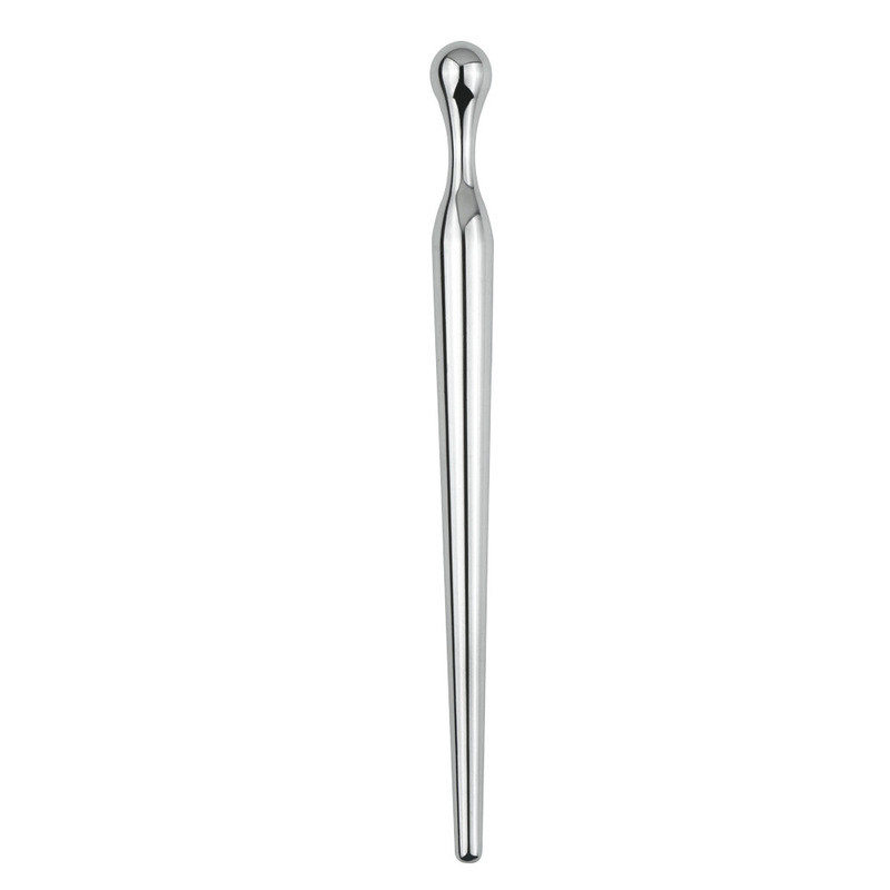 This plug is 10CM (4") long from top to bottom, with about 8CM (3.2") of insert able pleasure. The tip is just over 3.3mm (0.13") and graduates up to almost 8mm (0.3"). If you want to get straight to it, then get Tapered Elephant Dart Penis Plug.