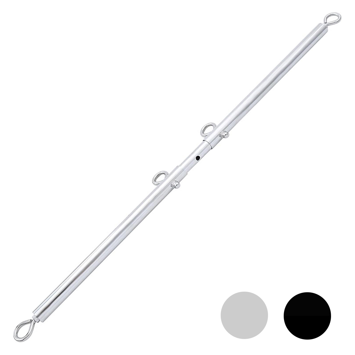 Keep your submissive restrained and spread as far as you like. This adjustable steel spreader bar restraint accessory has eyebolts securely attached to each end. Attach wrist or ankle cuffs to this metal bondage spreader bar and keep your slave spread.